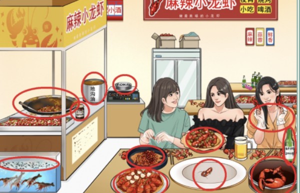 4.滑动右下角的龙虾找到变形的龙虾,滑动到盘子上的大龙虾找到小龙虾。
