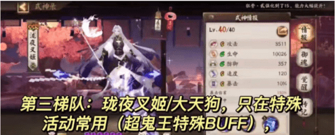 t3(部分阵容有奇效):怨恨般若、般若、稻荷神古池神、灵界波妞姬、紧那罗、圆镜神、小松丸、久次罗、鲸鱼、盒子里的女孩、清姬、土味。