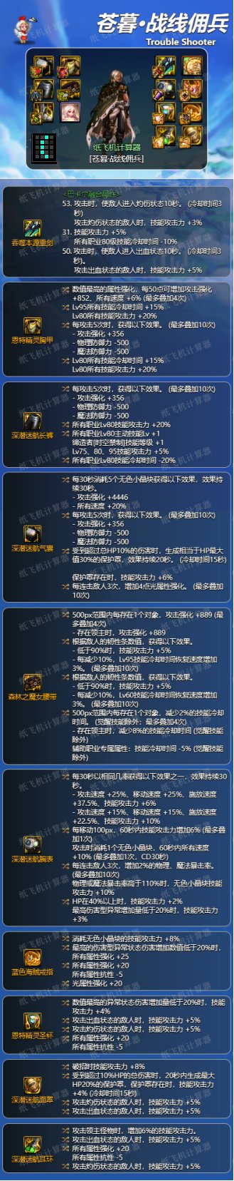 神界版本最适合佣兵类型。它结合了高速和专业化。缺点是手环需要习惯每60秒移动100px才能触发进入属性。武器膜的异常属性是根据自定义属性来选择的。最好有武器片1和2的条目。-80技能CD条目