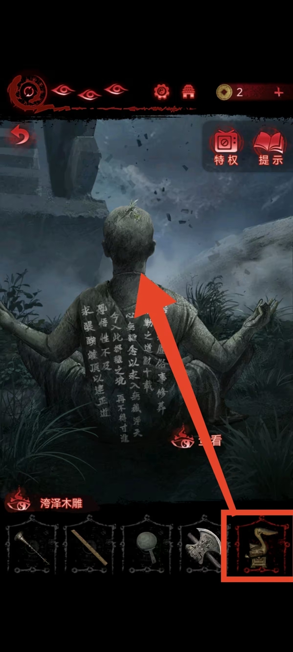 9、男主将铜镜送给女主。女主以女主视角解锁镜子和出口。利用铜镜打破砍树上船的幻象。获得木制蝙蝠雕塑并将其放在桌子上。检查完线索后,将船和古钱币放在右边的图片上。根据线索放置,获得木雕和手的好评,交给男主角,使用石人的好评即可获得线索。