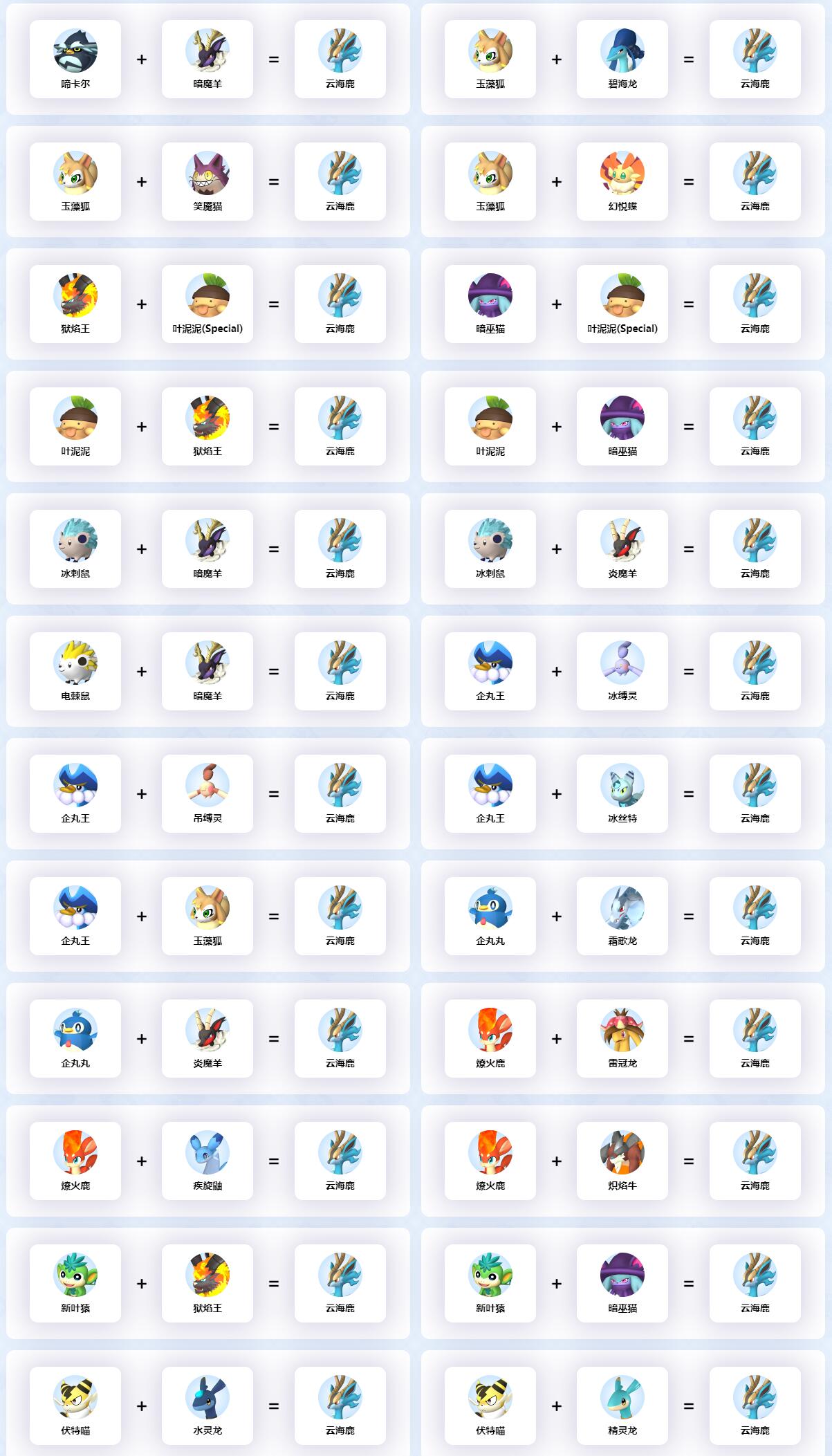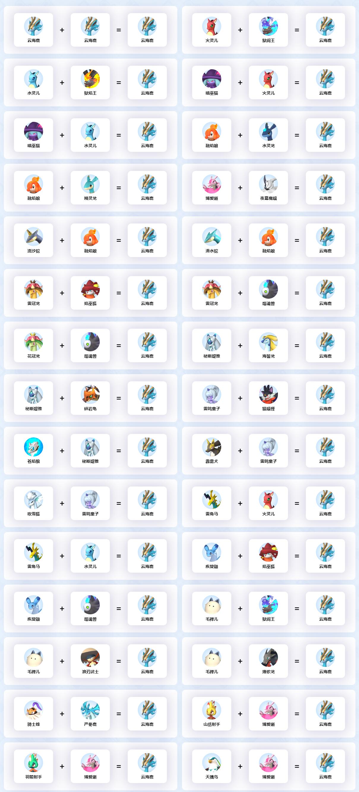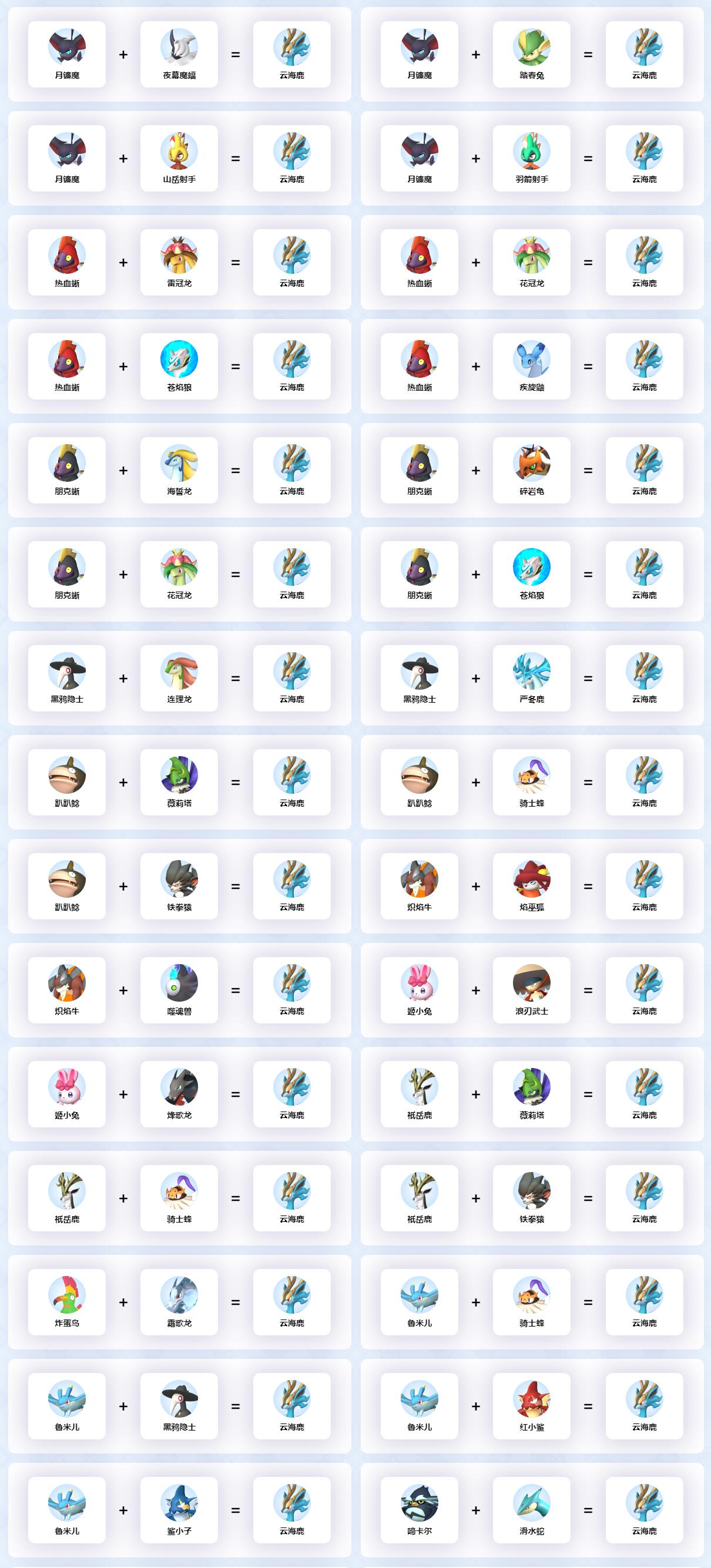 幻兽帕鲁云海鹿配种公式大全