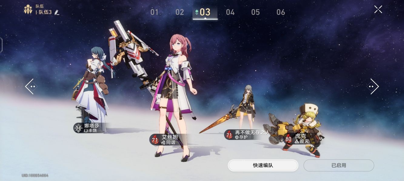 我自己玩的时候用的是这个阵容:银狼量子虚数二色