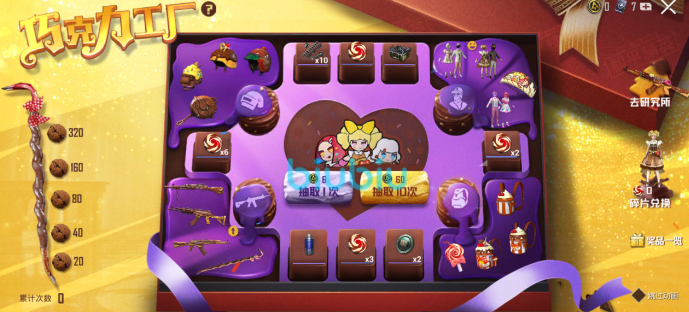 和平精英巧克力工厂里的物品主要分为粉色、紫色、蓝色三种。