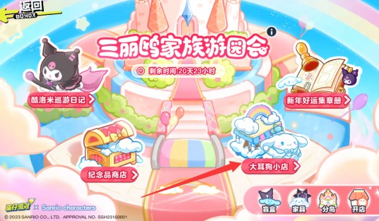 1.进入游戏,找到三丽鸥活动页面,点击进入大耳狗纪念品商店。