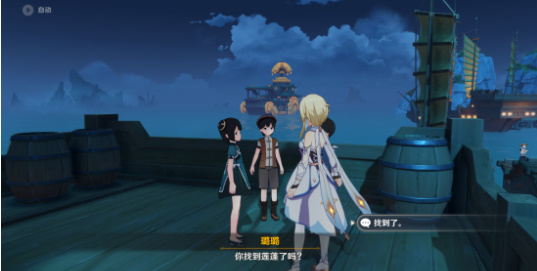 1、第一阶段,玩家需要来到璃月港的港口船上,孩子们想让我们扮演海盗,和他们一起玩游戏;