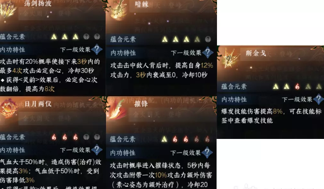 心法名称:剑浪、日月、暗刺、催锋、斩金戈