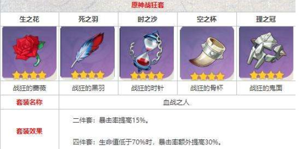 四件套:生命值低于70%时,暴击率额外增加24%。