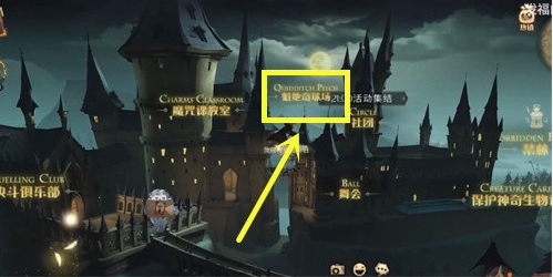 2.进入城堡上空后,直接飞向正前方的“魁地奇球场”。