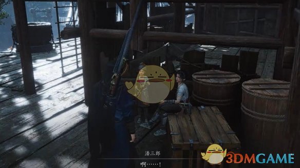 2.上来后,直走几步,与角落里的【潘三郎】对话,选择【吓我一跳】;
