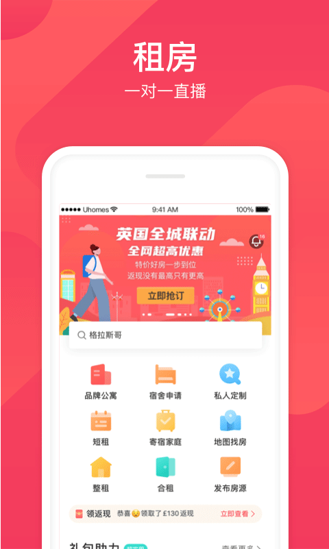 *海量房源:租房、留学生公寓、民宿、短租。