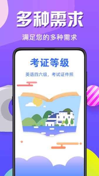 证件照相机软件可以把手机拍摄的照片制作成专业的证件照,让简历更美观,让求职更简单,让老板更满意。操作简单方便,带有p图模块,成像质量高!软件自带美颜、美化图片、电子换正装的功能。让你轻松颜值爆表。找工作不再难!目前支持的尺寸有一寸照、二寸照,全国四六级考试,计算机等级考试、教师资格证考试,各国签证,公务员考试、考驾照、简历照片等,几乎所有需要证件照的尺寸都有