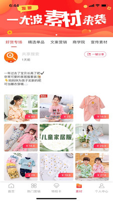 3.商城里有大量的好素材,一键选择素材分享,轻松赚钱;
