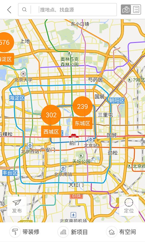 地图上找房的视觉空间:基于地理位置显示空间信息,用户可以直接在地图上找到合适的空间。