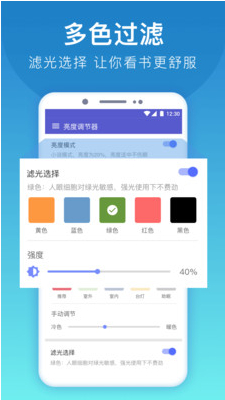 手机亮度调节器app是保护眼睛的屏幕亮度调节器手机亮度调节器app多色滤光,多种滤镜和模式可选,还可以自定义设置选择适合自己的亮度,玩游戏,看小说,看视频等。可以选择不同的亮度,用眼睛提醒太多。快来下载手机亮度调节器app保护眼睛!