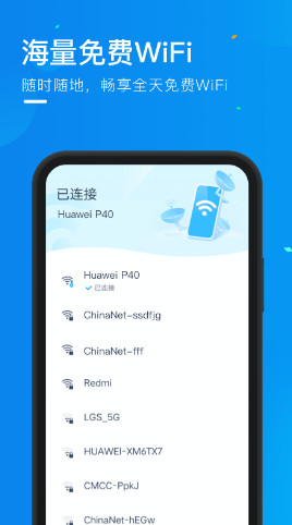 快速上网,全国超过1亿个免费WiFi热点,随时随地一键连接,全天享受免费WiFi。