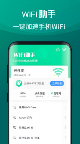 WIFI助手app是一款非常实用的安卓手机免费wifi应用,由北京云同步科技有限公司出品,帮助用户一键接入可用的无限免费wifi,出门不用担心自己流量不够用。