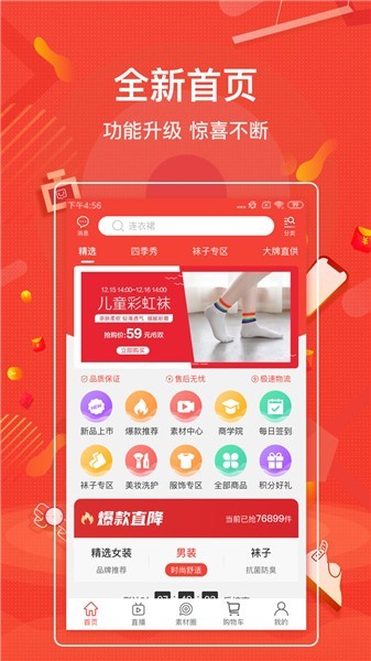 2.品类丰富:平台除了主营的袜子产品,还涵盖了美容护理、男女装、食品保健、家居生活等各种精选产品。满足用户一站式消费需求;