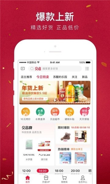 2.贝店超市每天限时选最好的商品抢增值福利;