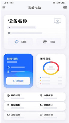 一部手机可以实时关注多台电脑的状态,比如:活动日志、开机时间、CPU/内存使用情况、网络连接、流量统计、进程信息等信息。