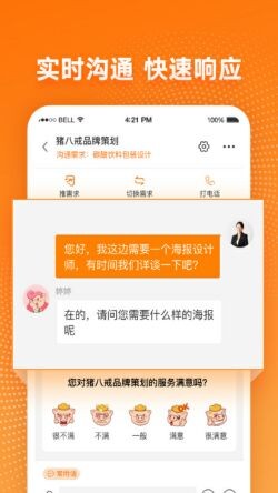 2、消息通知:随时随地与服务商在线沟通,实时咨询。