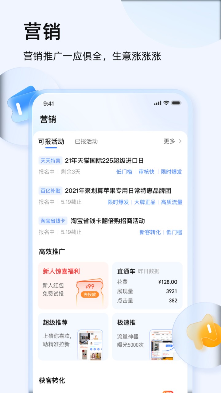 1.千牛App各类资讯,第一时间获取商品、订单信息、业务数据等信息。