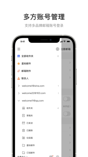 2.新浪邮箱2023版只需添加新浪邮箱账号即可一键登录,管理所有邮箱。新浪邮箱2023版不仅支持新浪免费邮箱、VIP邮箱、新浪企业邮箱,还全面支持QQ邮箱、163邮箱、126邮箱、outlook、hotmail等个人和企业邮箱。