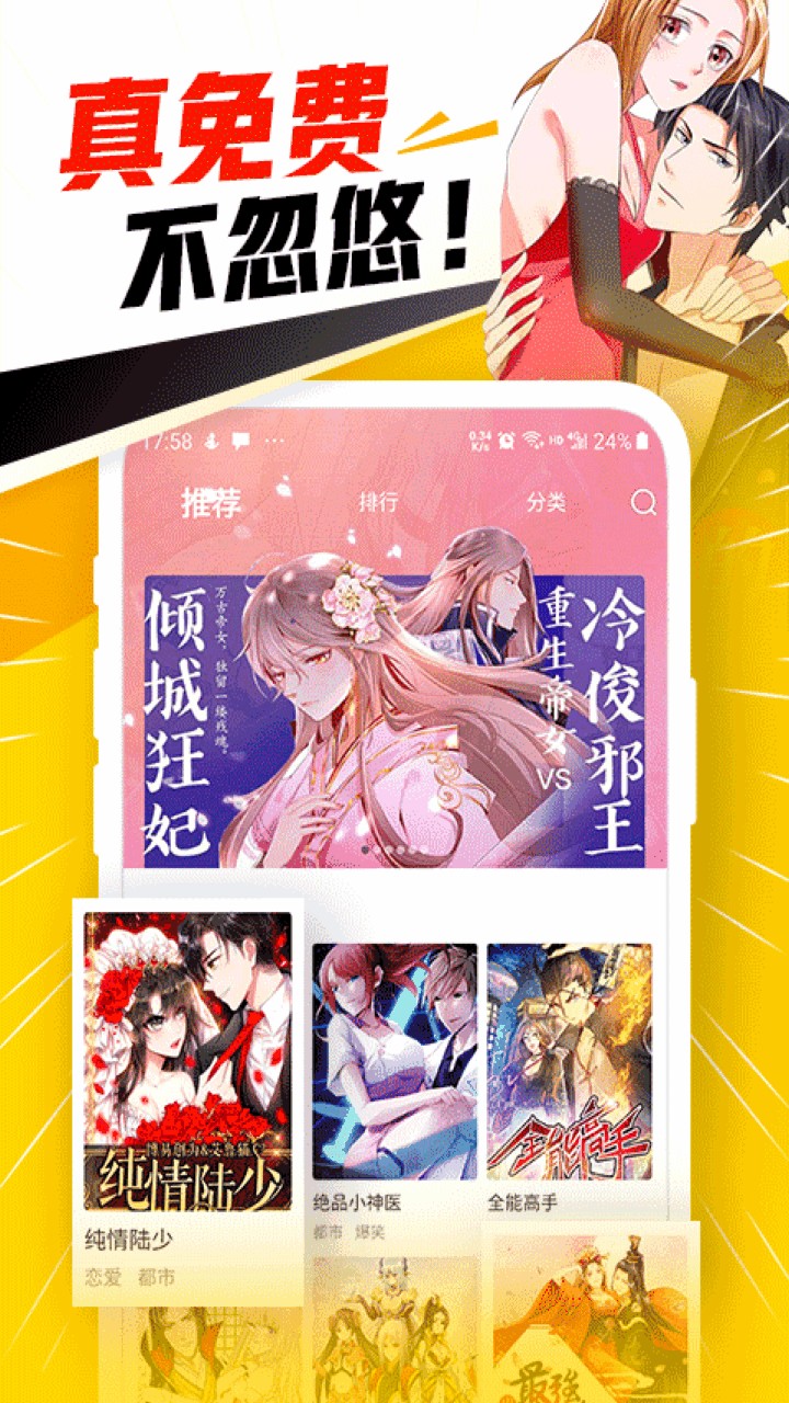 免费追漫神器app是一款非常流行的漫画软件。在这个免费的漫画应用中,您可以看到您想看的各种类型的漫画,无论是中国漫画、日本漫画还是韩国漫画。在这里,将所有内容集中在一处并免费阅读。您无需充值书币,也无需注册会员。无广告,给你最纯粹的追漫画体验。如果您遇到图书短缺的情况,也不用担心。还有一个排名功能。漫画的质量绝对不会差。如果你喜欢这款免费的漫画追剧应用,你还在等什么?快来下载并尝试一下吧。