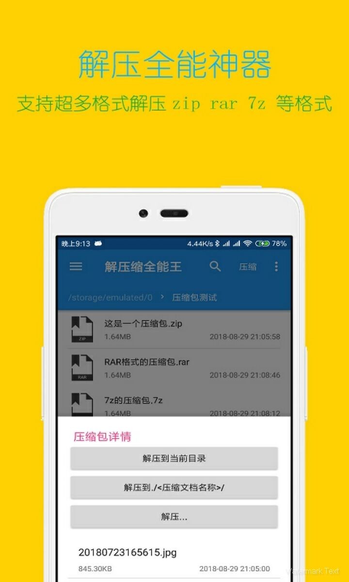 解压缩全能王app是一款超级好用的多功能解压工具。 解压缩全能王app 具有超快的解压速度,同时支持文件压缩和解压。 解压缩全能王app有多种减压级别可供选择,操作简单,一目了然。 解压缩全能王app具有多种压缩模式,解压速度极快,节省宝贵的时间,并且支持多种格式。一款软件可以解决所有压缩和解压问题。