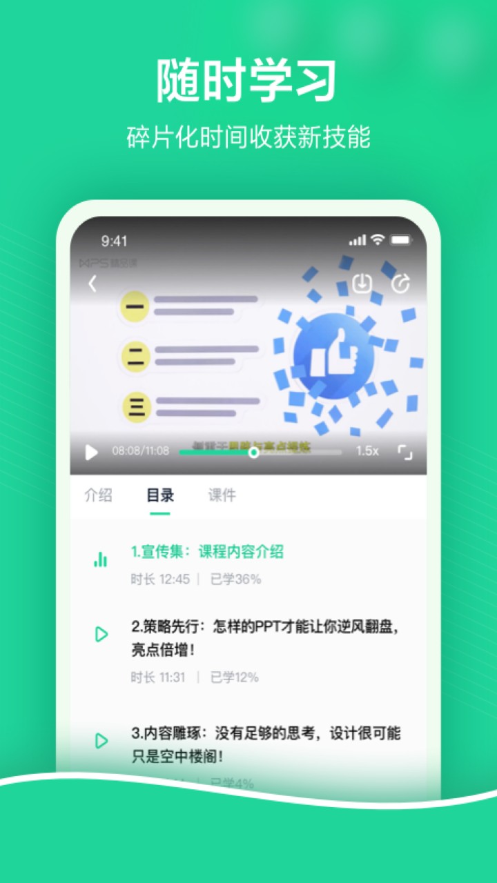 2.WPS精品课app的课程主要是帮助都市人提升能力。