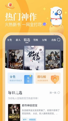 2、精选书籍:女性频道、男性频道、出版物、免费小说均可阅读。