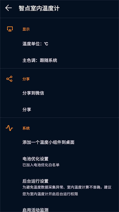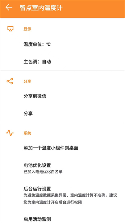 室内温度计app此室内温度测量软件通过传感设备准确测量环境温度。安装后两个小时内,该软件开始执行智能温度分析,即使长时间佩戴了设备,该软件也可以提供相对准确的环境温度数据。