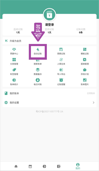 3。在[我的]页面上,单击[自动会计]选项。