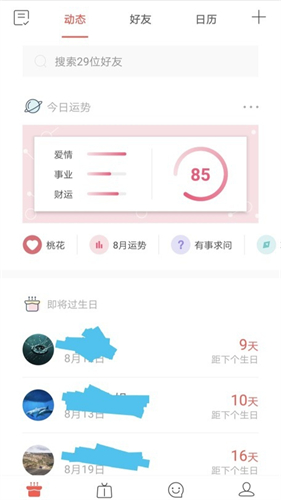 1。登录生日管家APP,在动态页面中查看朋友的生日信息和相关内容。