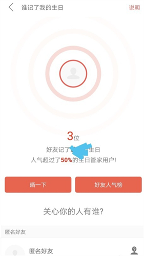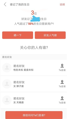 4。该页面将显示匿名关心生日的用户。如果您想知道他们是谁,则可以单击“询问他们是谁”要确认。