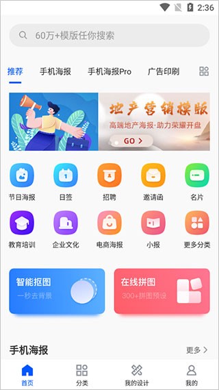【模板编辑】提供大量现成模板,适合海报、新媒体图文等场景。