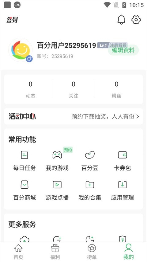 日常任务和关注都会包含在这里,商店和游戏点播可以为用户提供优质的服务。
