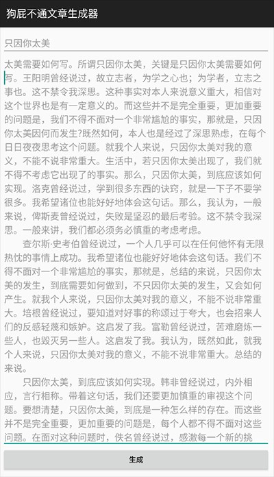 狗屁不通文章生成器写论文通过预设的语料库和模板算法生成文章内容。用户可以自定义关键词,自动生成相关主题段落。 狗屁不通文章生成器写论文应用下载支持不同文体的选择,如议论文、说明文等,废话文章生成器生成的内容语法完整,适合展示或二次编辑!