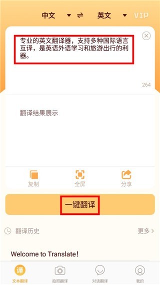 3.点击一键翻译进行转换。还支持中英、英中、中日、日中、中韩、韩语等语言,让用户轻松实现英语翻译、英语照片翻译、日语照片翻译、韩语照片翻译。