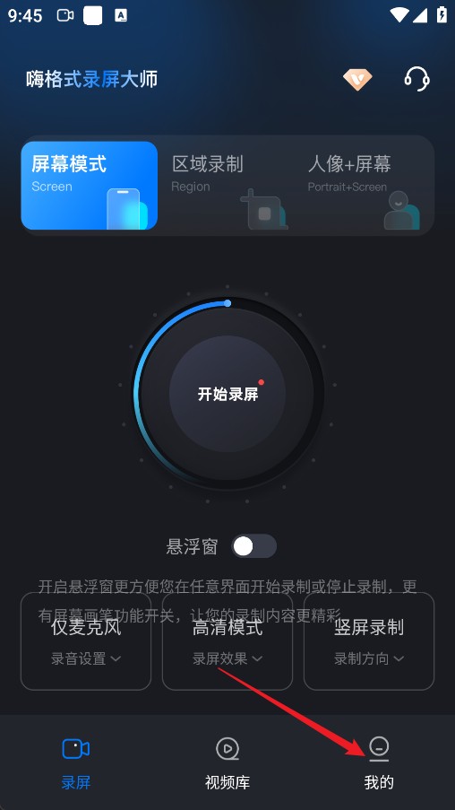 1、打开嘿录录屏app,选择屏幕录制模式及参数,点击开始录制;