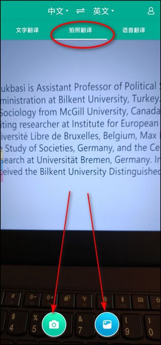 2. 使用手机摄像头对准您要翻译的语言或直接调用手机内存中的图片来翻译语言;