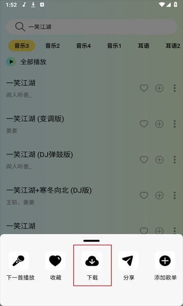 1.下载并进入软件,点击上面的搜索框,找到自己喜欢的歌曲,点击右边的三个点