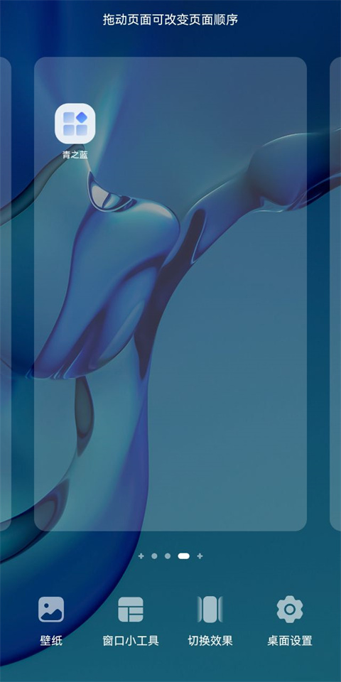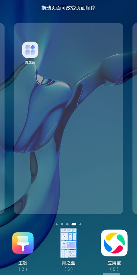 1、首先进入青之蓝主题软件,用两根手指捏合桌面;
