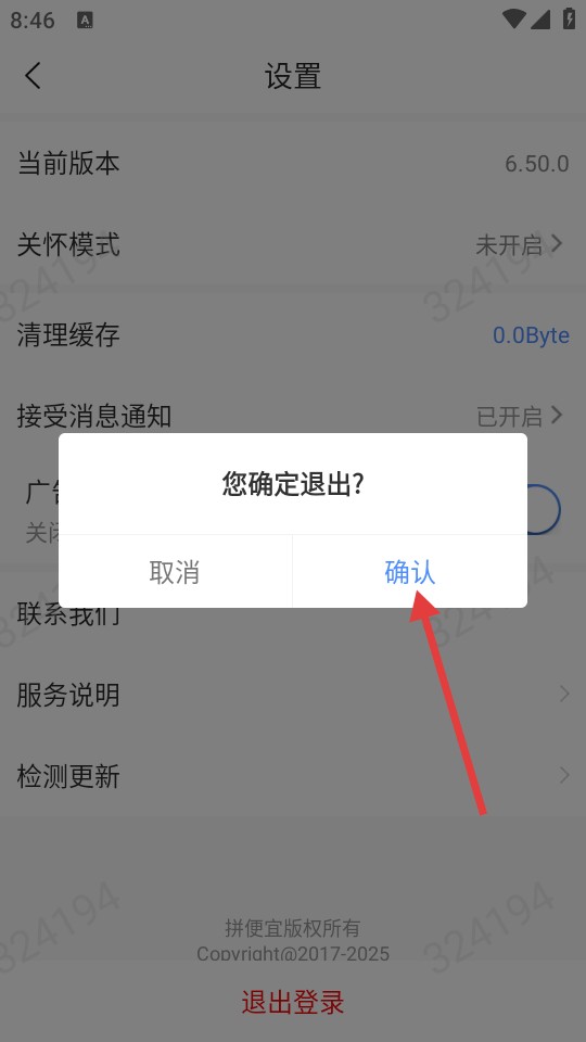 3. 在【设置】页面,点击底部的【注销】按钮,弹出确认弹窗。