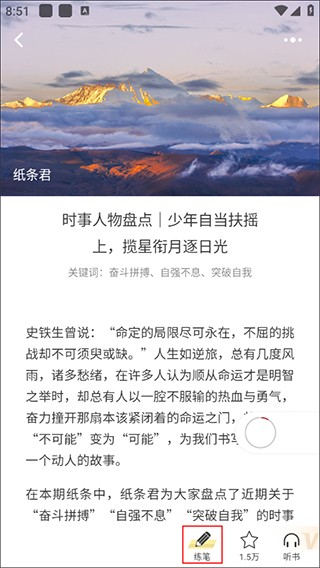 3.然后进入笔记详情页面,点击底部的“练习笔”图标;