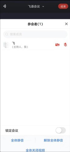 3. 现在会议已创建。时间到了,会议就可以开始了。此处可以看到参与者,并且所有人都可以静音。