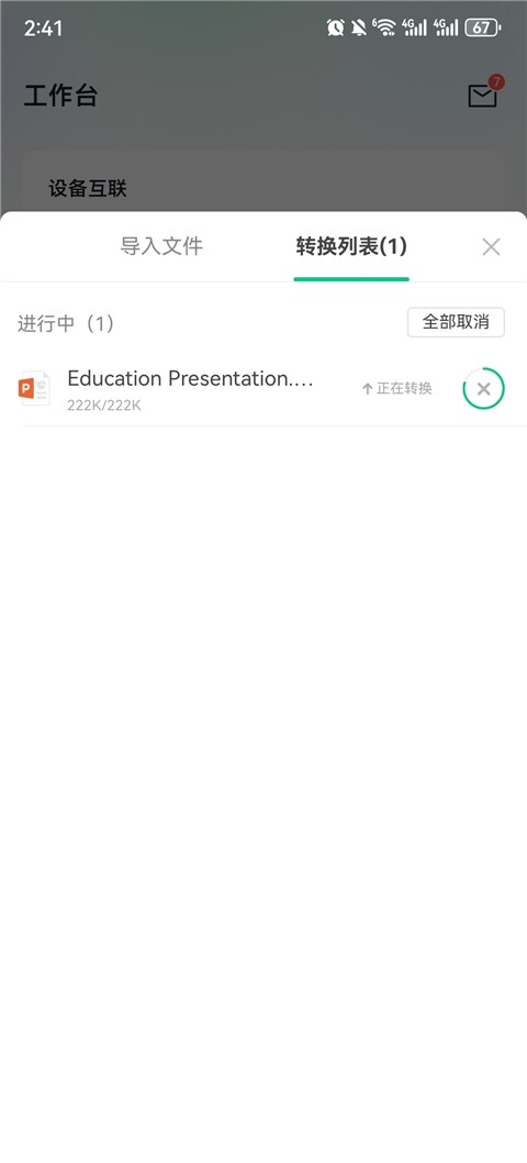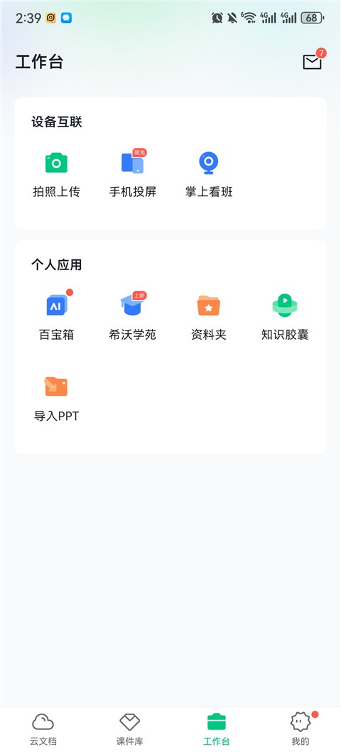 1.打开手机上下载的最新版希沃白板,切换到【工作台】页面,选择【导入PPT】