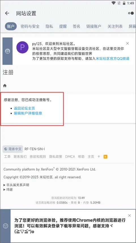 5、当您注册成功并看到“您已成功注册账户提示”时,即表示您已注册。