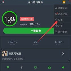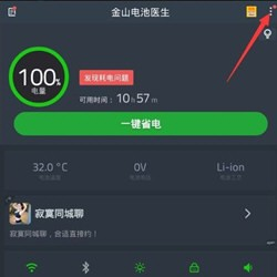 1、安装金山电池医生2025,然后找到本应用主界面右上角图片上的位置,轻轻点击,就会出现一个菜单!