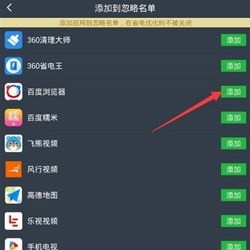5、在已安装的应用程序列表中,根据个人需要,点击应用程序后面的“添加”按钮,该应用程序就会成功添加到忽略清理列表中。