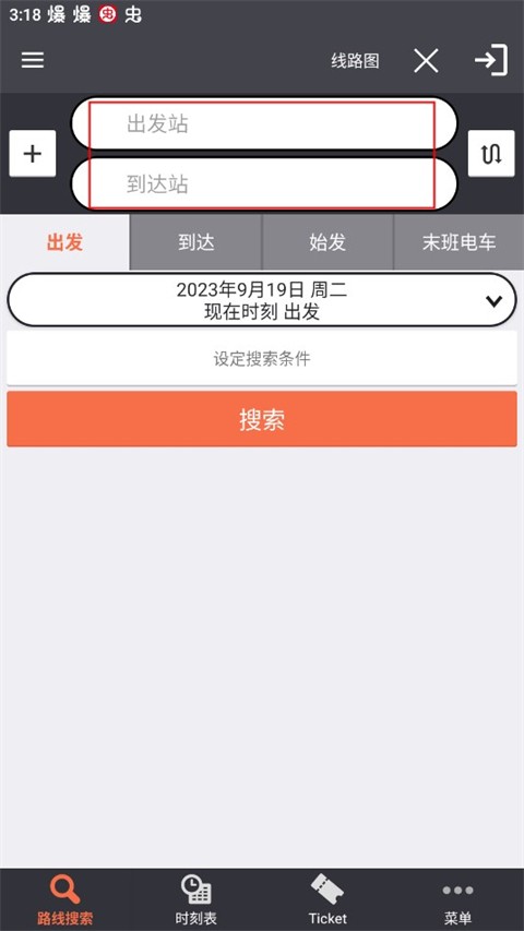 1.打开软件后,在界面中输入出发站和到达站。